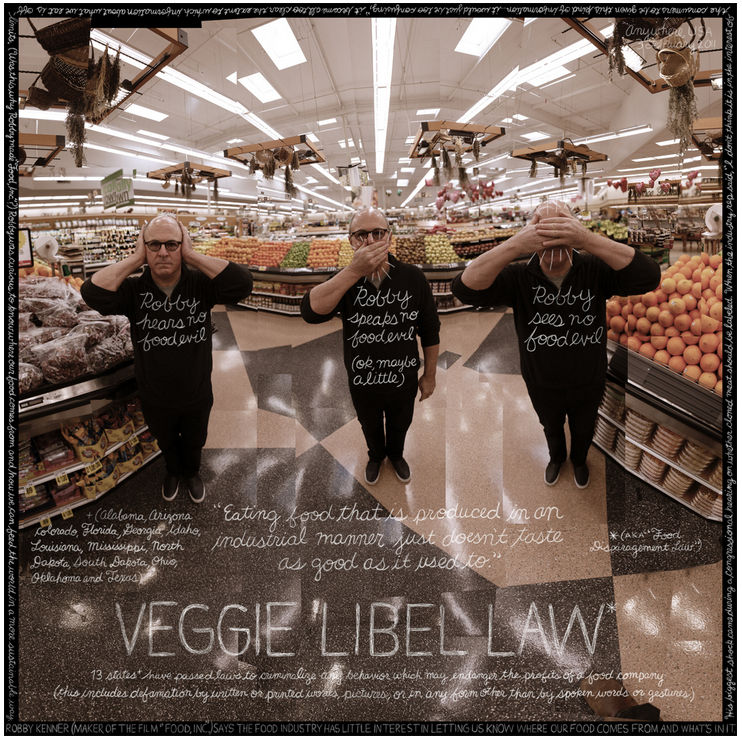 La ley Veggie libel law ( ley de difamación alimentaria ) ha sido ya aprobada en 13 estados de los EE.UU. y básicamente lo que promulga es la penalización de cualquier comportamiento o crítica que pueda poner en riesgo los beneficios de la potente industria agroalimentaria estadounidense.